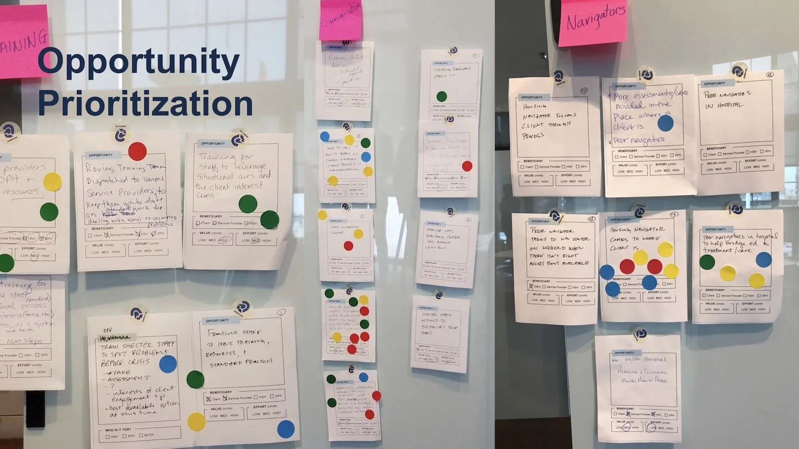 Qualitative research, data analysis, human-centered design workshop facilitation, journey mapping, service blueprinting, and communication design