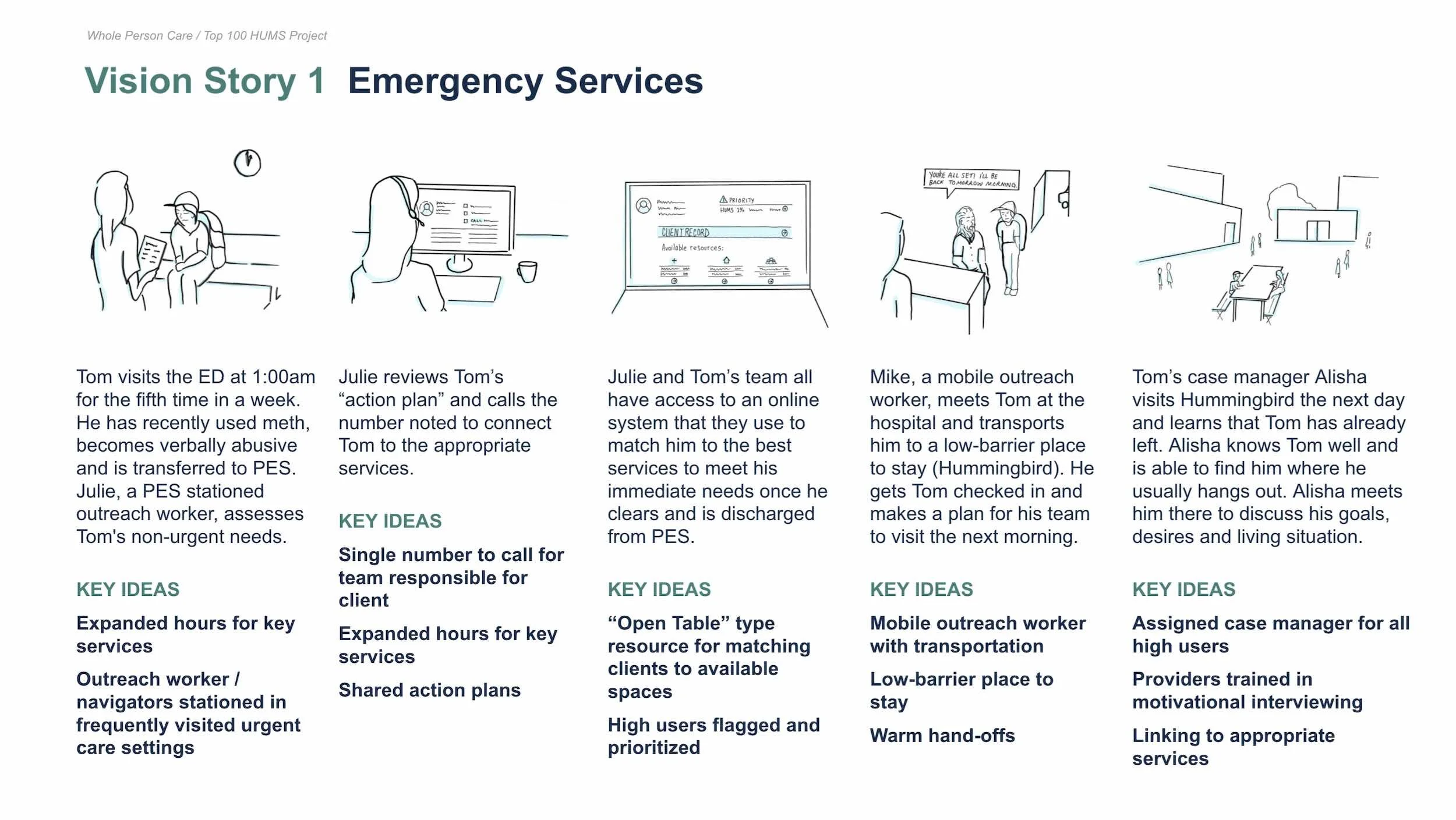As Chief Service Designer for the Whole Person Care program, I led a team of designers, researchers, and analysts to understand and overcome barriers preventing people experiencing homelessness from accessing care in San Francisco.